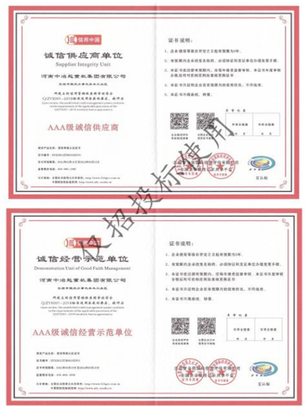 AAA 级诚信供应商单位、诚信经营示范单位